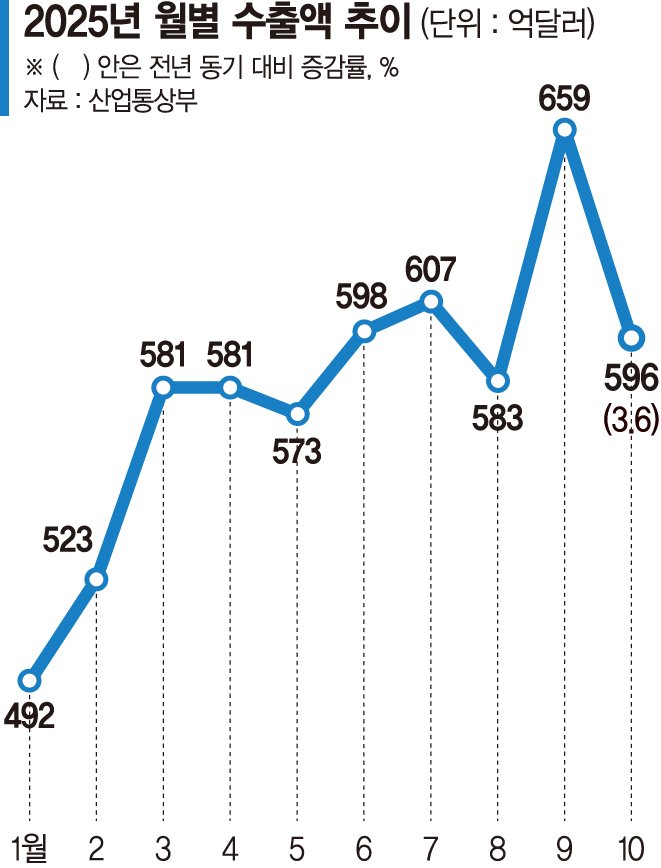 3일 산업통상부에 따르면 올 10월 기준 누적 수출액은 5793억달러로, 전년 동월 누적액(5660억7000만달러)보다 133억달러가량 높은 수치를 기록했다.