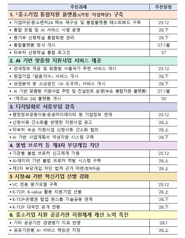 이번 개선 방안은 △중소기업 통합지원 플랫폼 구축 △AI 기반 맞춤형 서비스 제공 △디지털화로 서류부담 감축 △불법 브로커 등 제3자 부당개입 차단 △시장·AI 기반 혁신기업 선별 강화를 골자로 한다.