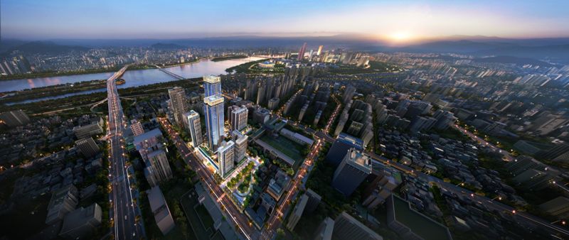단지 설계에는 일본의 롯본기힐스를 비롯해 미국의 산타모니카 플레이스·라스베이거스 벨라지오 호텔을 디자인한 세계적인 건축설계 그룹인 저디(JERDE)가 참여한다.
