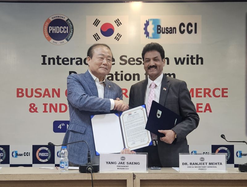 사절단은 먼저 이날 오전 11시 인도 뉴델리 소재 PHD 상공회의소와 양 기관 간 경제협력 및 교류 활성화를 위한 양해각서를 체결했다.