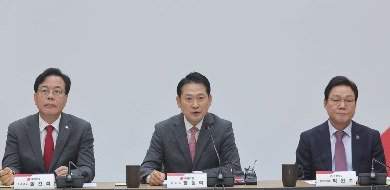장 대표는 "어제(3일) 추경호 전 원내대표에 대해 특검이 구속 영장을 청구했다"며 "목적은 간단하다. 죄가 되지 않는다고 하는 것, 영장이 기각될 것이라는 것을 특검 스스로가 잘 알고 있을 것"이라고 했다.