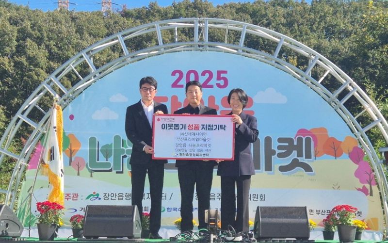 [파이낸셜뉴스] 신세계사이먼 부산프리미엄아울렛이 지난 1일 오후 장안읍 농축특산물 판매장에서 열린 ‘2025 장안읍 나눔 프리마켓’ 행사에서 500만원 상당의 취약계층 돕기 성품을 기탁했다고 5일 밝혔다.