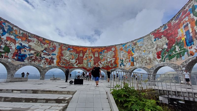 구다우리의 첫 목적지는 해발 2380m에 있는 '파노라마 구다우리' 전망대였다. 전망대는 1983년 조지아와 러시아의 우정을 기념하는 모자이크 벽화가 있다. 1783년 체결된 게오르게프스크 조약(러시아의 조지아 병합 계기가 되는 조약)의 200주년을 기념하는 해에 설립됐다고 한다. 이곳에서는 카즈베기 산맥과 아르게티 협곡을 한눈에 조망할 수 있다. 커다란 원형 벽돌 형태의 조형물에 내부에서 모자이크 벽화를 배경으로 여러장의 사진을 남겼다.