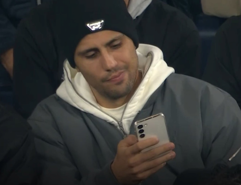 이 가운데 중계화면에서 로드리가 관중석에서 스마트폰을 보는 장면이 잡혔다.