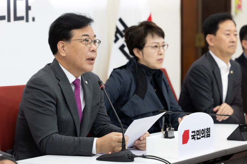 송언석 국민의힘 원내대표는 이날 국회에서 기자간담회를 열고 "10·15 정책과 관련된 통계 조작 의혹은 정부에 대한 국민의 신뢰를 근본부터 흔드는 것"이라며 "국민의힘은 부동산 통계조작 의혹 진상규명을 위한 법적 고발 조치를 취하겠다"고 말했다.