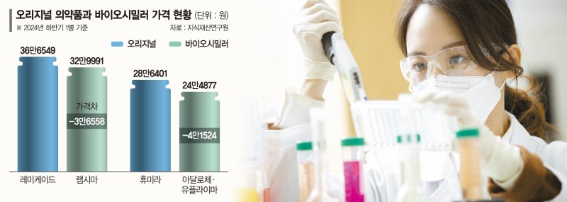 국내의 경우 바이오시밀러가 오리지널 약에 비해 많이 저렴하지 않다는 것도 문제라는 지적이다. 우리나라에서 지난해 기준 아달리무맙 성분의 오리지널 약과 바이오시밀러 간 약가 차이는 10∼15%에 불과했다. 유럽에서 아달리무맙 바이오시밀러가 오리지널에 비해 60% 저렴한 것에 비하면 경쟁력이 높지 않다.