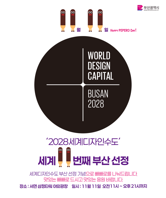 빼빼로데이라는 대중적 기념일과 부산이 11번째 세계디자인수도로 선정된 상징성을 결합, 시민이 직접 참여하고 즐길 수 있도록 디지털 공동 홍보 영상 제작, 팝업 부스 운영, 옥외 매체 연계 홍보 등 다채로운 프로그램으로 구성됐다.