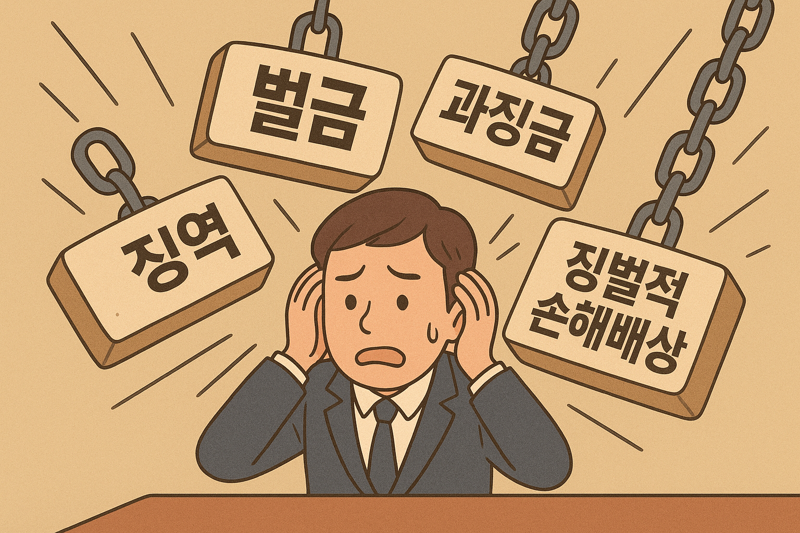 일례로 공정거래법에 따르면, 사업자 간 가격·생산량 등의 정보를 교환하는 행위만으로도 담합 합의로 추정될 수 있다. 공정거래법 40조에서는 정보교환행위에 대해 징역(3년 이하), 벌금(2억 원 이하), 과징금(매출액 20% 이내), 징벌적 손해배상(3배)등을 규정하고 있다. 대리점법 6조 구입강제행위도 징역(2년 이하), 벌금(1억 5000만 원 이하), 과징금(법 위반 금액 이내), 징벌적 손해배상(3배)를 명시하고 있다.