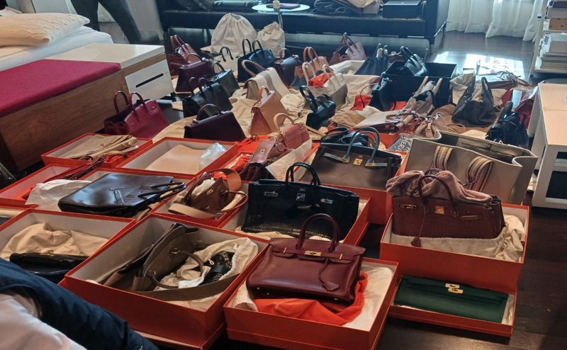 국세청 합동수색반이 한 체납자(A씨)의 자택을 수색하던 중 오렌지색 종이박스를 열자, 방 안을 가득 메운 명품 '에르메스' 가방 60점이 쏟아져 나왔다.
