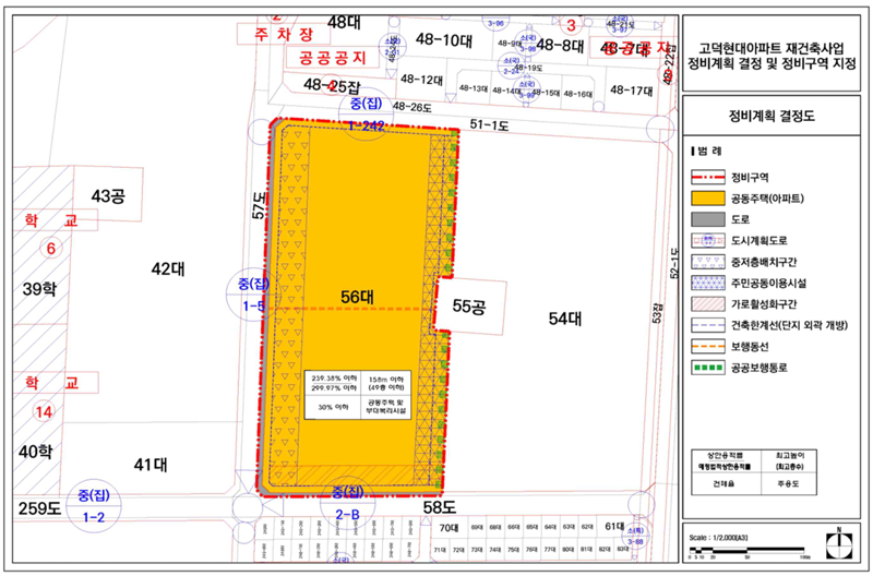 이번 정비계획에 따라 고덕현대아파트는 기존 542가구에서 952가구로, 명일신동아아파트는 현재 570가구에서 최고 49층 높이 947가구로 조성된다.