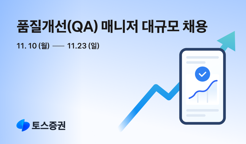 [파이낸셜뉴스] 토스증권이 오는 23일까지 품질개선 매니저(QA 매니저) 대규모 공개 채용을 진행한다고 10일 밝혔다.