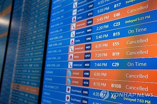 이날 늦은 오후까지 결항한 항공편은 약 2천300편, 지연된 항공편은 8천100편에 달했다. 결항·지연 항공편 수는 실시간으로 늘어나는 추세다.