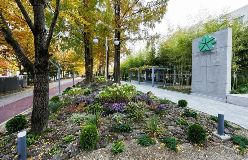 새롭게 조성된 시민애뜰은 에메랄드그린, 블루엔젤 등 다양한 수목과 수국 등 계절별 화단이 어우러져 사계절 내내 변화하는 경관을 선보인다.