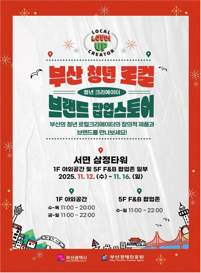 [파이낸셜뉴스] 부산시와 부산경제진흥원은 12일부터 16일까지 5일간 서면 삼정타워에서 '2025 부산 청년 로컬 브랜드 팝업스토어'를 개최한다.