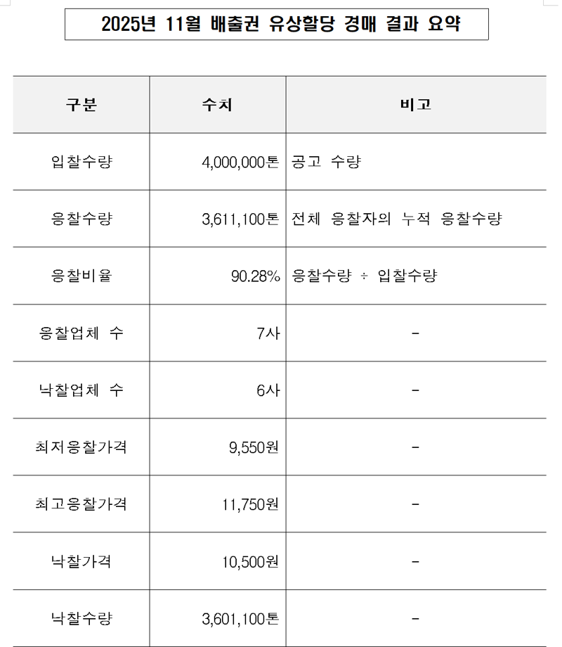 12일 한국거래소(KRX)에 따르면 이날 KAU25 경매 응찰률은 90.28%로 집계됐다.