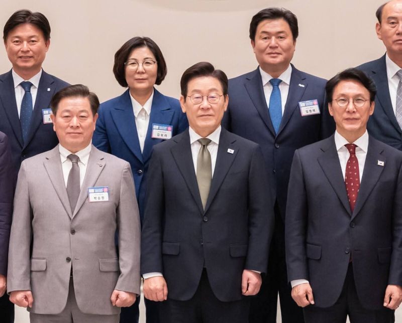 전국 시장·군수·구청장 초청 국정설명회 참석, 李대통령과 화담