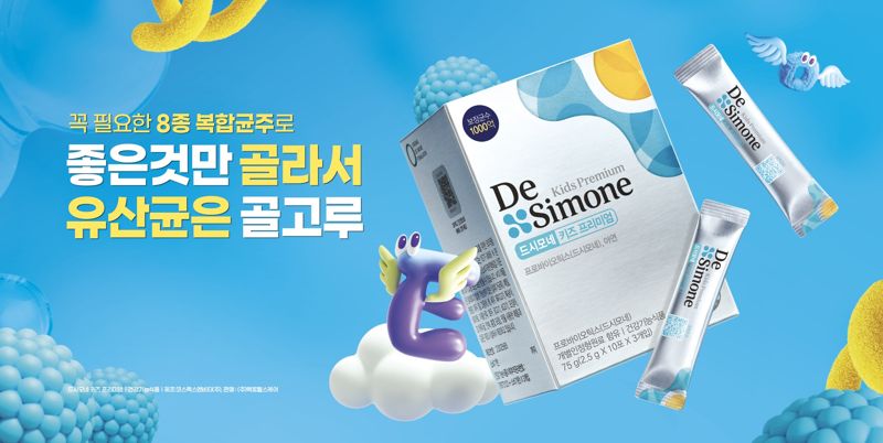 부스에서는 드시모네 키즈 유산균을 비롯해, 김석진LAB(랩)의 키성장 건강기능식품 ‘아임빅키’, 키즈 오메가3 스마트츄, 키즈 멀티비타민 톡톡 등 성장기 어린이를 위한 건강기능식품 라인업을 직접 만나볼 수 있다. 전문 상담을 통해 제품의 기능성과 섭취 가이드도 안내한다.