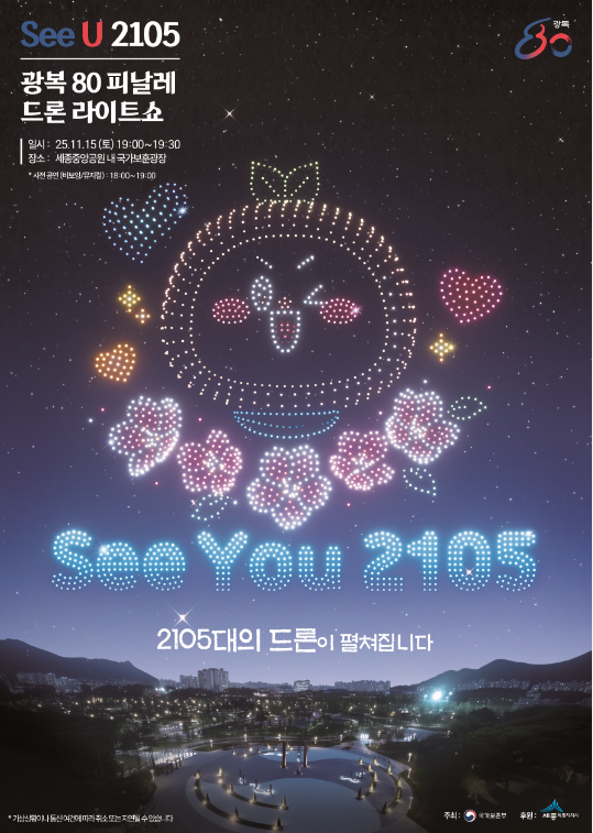 드론쇼는 선열들의 염원, 광복의 기쁨, 독립유공자의 희생과 헌신, 그리고 그 위에 피어난 현재 대한민국의 모습과 K-컬처, 나아가 미래 80년의 비전을 입체적으로 표현한다. 빛축제는 과거(1945년)·현재(2025년)·미래(2105년)를 상징하는 터널로 조성되며, 연말까지 상시 운영된다.