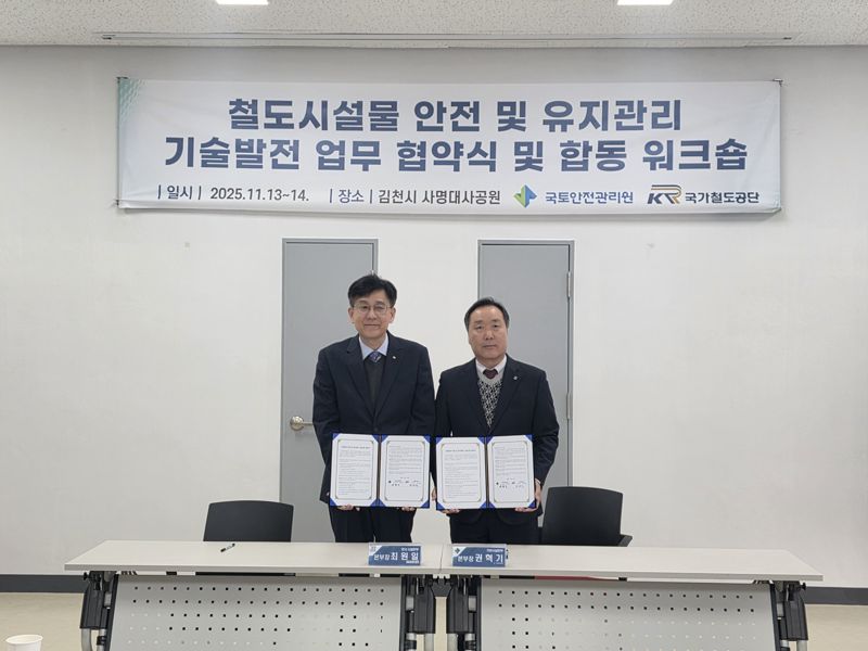 [파이낸셜뉴스] 국토안전관리원은 13일 경북 김천시 사명대사공원에서 국가철도공단과 '철도시설물 안전' 업무협약을 체결했다고 밝혔다. 이번 협약은 두 기관이 보유한 전문성과 역량을 결집해 협업 네트워크를 강화하고, 안전·유지관리 분야의 기술을 공유하기 위해 추진됐다.