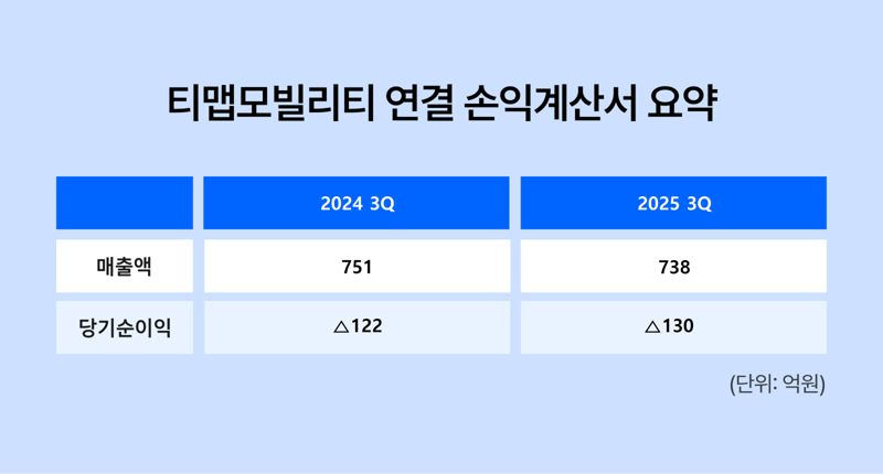 티맵모빌리티는 올해 3·4분기 매출 738억원을 기록했다. 영업손실은 13억원으로 전년 동기 대비 64억원 개선됐다. 고수익 사업 포트폴리오 비중 확대와 모빌리티 데이터 기반 운영 효율화가 손익 개선을 이끌었다.