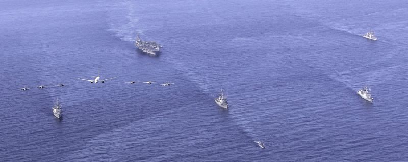 통상, 미 해군이 작전지역에 진입시 완전한 항공모함 강습단(CSG : Carrier Strike Group)이 구성된다. CSG는 항공모함 1척을 중심으로 이지스 방공함 1~2척, 구축함 2~5척, 1척 이상의 군수지원 보급함과 1~2척의 공격형 원자력 추진 잠수함으로 구성된다.
