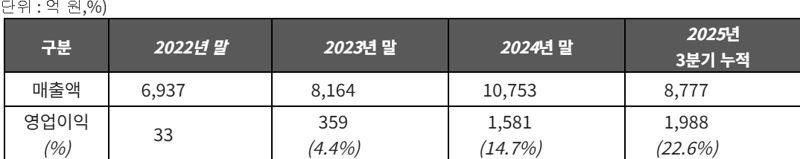 올해 3분기 누적 기준으로 매출 8777억원, 영업이익 1988억원이다. 영업이익률은 22.6%를 기록했다.