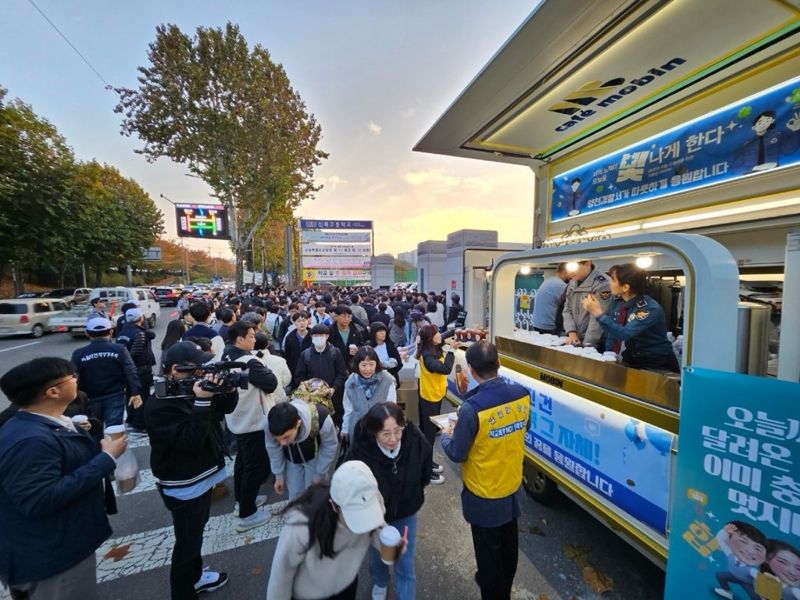 서울 양천경찰서는 전날 오후 양천구 신목고등학교에서 수능 시험을 보고 나오는 수험생을 대상으로 무료 커피와 전통차 등 음료 500잔을 제공했다고 14일 밝혔다.