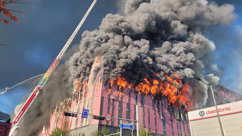 소방당국에 따르면 이날 오전 6시 8분께 천안 동남구 풍세면 용정리에 있는 이랜드패션물류센터 상층부에서 화재가 발생했다. 소방당국은 화재 신고 접수 약 7분 만에 대응 1단계를 발령했지만, 불이 건물 전체로 확산됐다. 이에 1시간 뒤 인근 소방서의 인력과 장비를 모두 투입하는 대응 2단계로 격상했다.