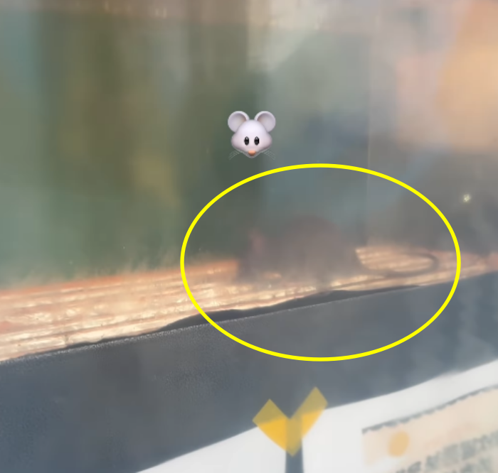 영업 전으로 보이는 노점 안에서 쥐가 부스러기를 먹고 있는 모습을 본 촬영자는 비닐 천막을 두드려 쥐를 내쫓으려 했다. 그러나 쥐는 아랑곳하지 않고 보관대 위를 돌아다니며 계속 부스러기를 먹다가 아래로 사라졌다.