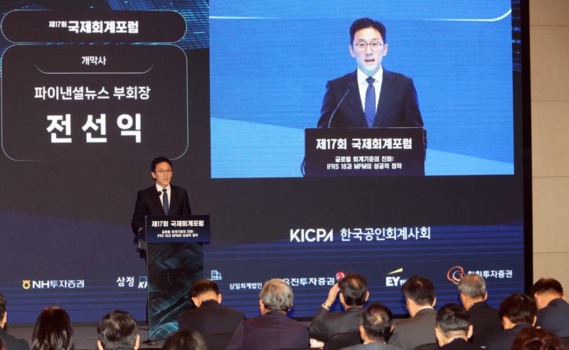전선익 파이낸셜뉴스 부회장은 18일 서울 여의도 콘래드호텔에서 파이낸셜뉴스와 한국공인회계사회 주최로 열린 ‘제17회 국제회계포럼’에서 “오는 2027년 도입되는 국제회계기준(IFRS) 18은 손익계산서의 구조를 바꾸고 영업손익의 정의를 새롭게 규정하는 등 재무제표의 언어가 바뀌는 대변화”라며 이같이 말했다.