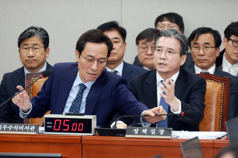 김 의원이 "엮는 게 아니라 역지사지"라고 말하자 김 실장은 "저는 갭투자 안 한다고 말했다. 딸이 갭투자 한다는 식으로 얘기하지 않았느냐"고 공방을 이어갔다.