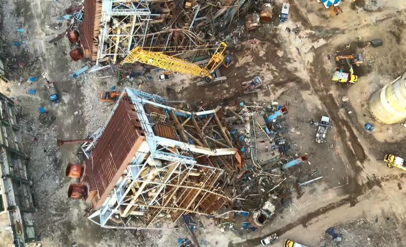 【파이낸셜뉴스 울산=최수상 기자】 7명이 사망하고 2명이 다친 울산화력발전소 보일러 타워 붕괴 사고 현장에 대한 관계 기관의 합동감식이 18일 시작됐다.