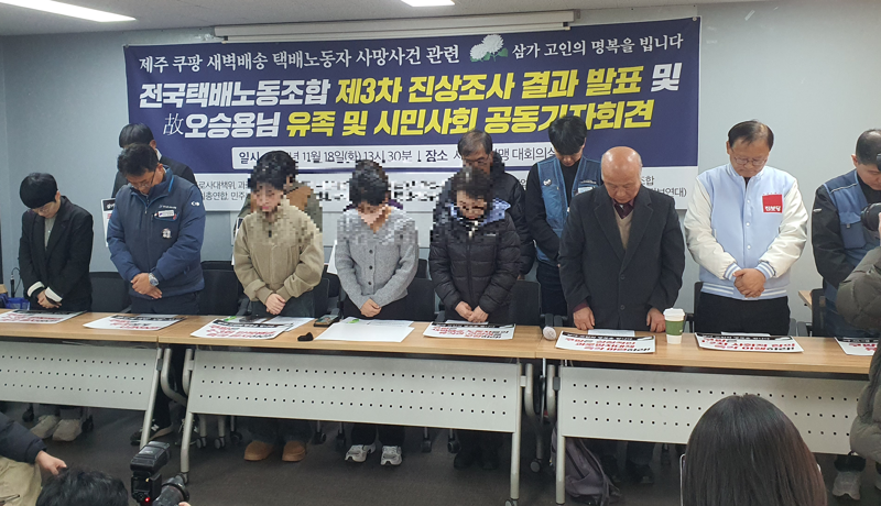 택배노동자과로사대책위원회(과로사대책위)와 고인의 유족, 시민사회단체는 18일 서울 서대문구 서비스연맹 대회의실에서 기자회견을 열고 오씨에 대한 3차 진상조사 결과를 발표했다.
