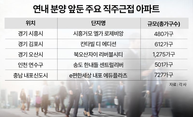 연말까지 공급을 앞둔 주요 직주근접 아파트로는 모아주택산업·로제비앙건설이 이달 분양하는 경기도 시흥시 시흥거모지구 B6블록에서 '시흥거모 엘가 로제비앙'이 있다. 지하 2층~지상 최고 25층, 5개 동, 전용면적 61·84㎡, 총 480가구 규모다.