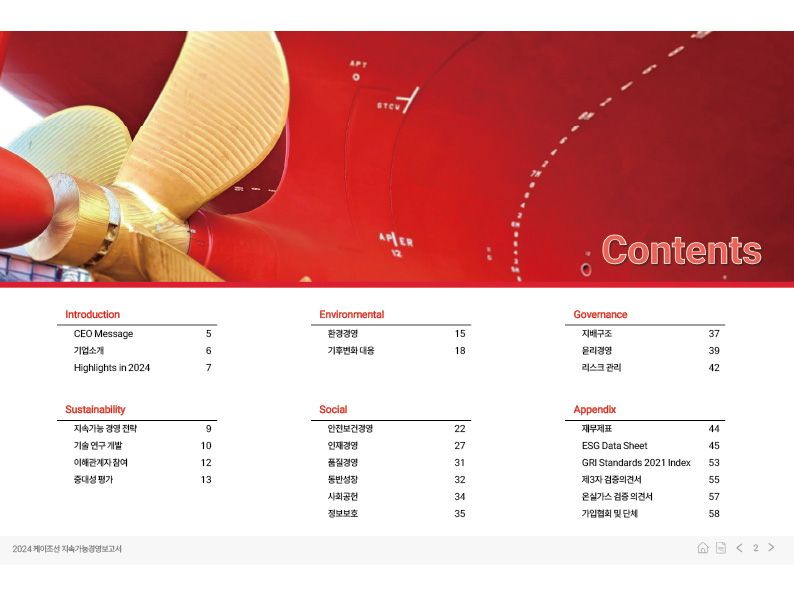케이조선 측은 “지속가능경영보고서를 통해 투명한 경영과 ESG 가치 실현을 지속해나가며, 이해관계자와 함께 성장하겠다”고 말했다.