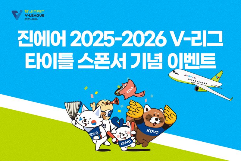 2026년 4월 8일까지 5개월간 진행되며, 진에어 홈페이지 및 모바일 웹·앱 내 프로모션 페이지에서 댓글을 남기면 자동으로 응모된다. 시즌이 종료된 후 챔피언 결정전 최종 우승팀을 응원한 댓글 참여자 중 추첨을 통해 △국제선 왕복 항공권 2매(2인)를 증정한다. 챔피언 결정전 최종 우승팀을 맞히지 못했더라도, 이벤트에 참여한 모든 고객을 대상으로는 △국내선 왕복 항공권 2매(6명) △진에어 모형 항공기(20명) △KOVO 굿즈(10명) 등을 추첨을 통해 제공할 예정이다. 당첨자는 2026년 4월 22일 진에어 홈페이지에서 발표된다.