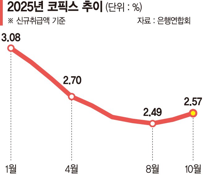 이는 전반적으로 은행의 자금조달 비용이 빠르게 높아지고 있는 구조적 요인의 영향이라는 분석이다. 우선 주담대의 기준이 되는 코픽스(COFIX)가 최근 두 달 연속 상승했다. 코픽스는 은행이 실제 조달한 예금·채권 금리를 반영하는 지표로, 조달비용 상승이 있으면 대출금리가 자동적으로 따라 움직일 수밖에 없다.