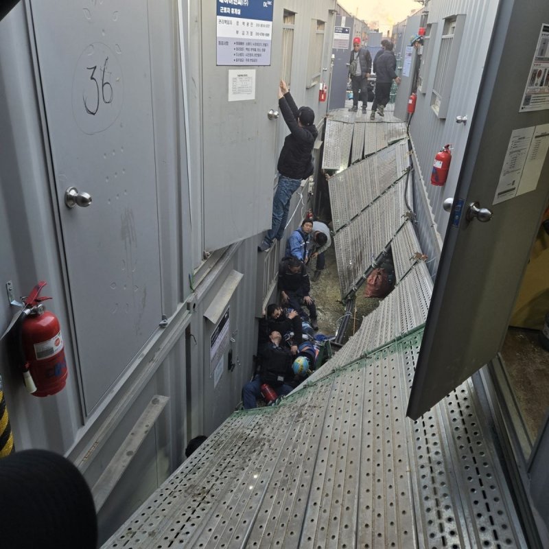 당시 근로자 수십명이 퇴근 절차를 밟기 위해 발판 위에서 대기 중이었던 것으로 알려졌다.