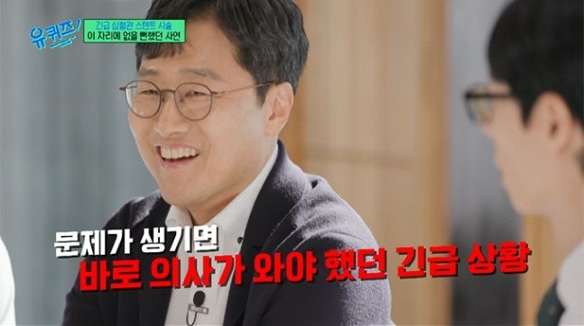 김 교수가 당시 원고 마감과 시술 원리를 생각했다고 말하자, 진행자 유재석은 "보통 이런 큰일을 겪으면 인생을 돌아보게 되지 않냐"고 물었다.