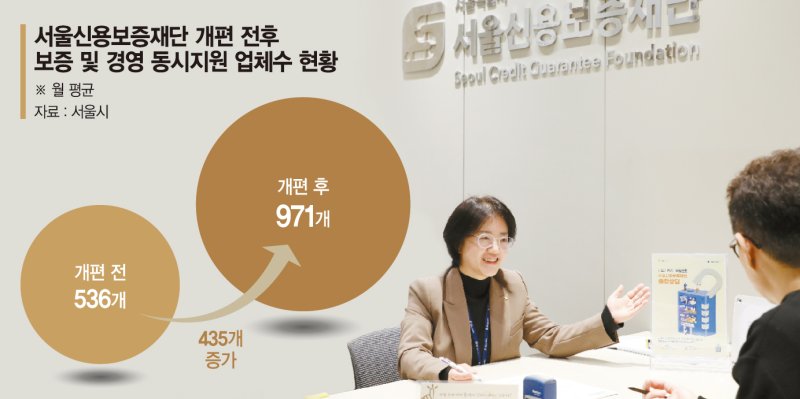 개편 후 서울신용보증재단은 전 지점을 '종합지원센터'로 이름을 바꾸고 보증 등 금융지원 중심에서 세무·노무·마케팅·디지털 전환 등 전반을 지원하도록 했다. 금융과 경영지원 상담을 한 번에 받을 수 있는 종합상담창구를 새로 개설해 1회 방문만으로 보증은 물론 창업·재창업, 세무·노무, 판로개척, 디지털 전환 등 생애주기별 원스톱 지원을 받을 수 있도록 했다.
