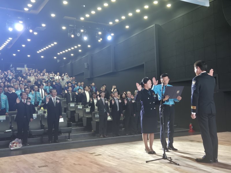 (춘천=뉴스1) 이종재 기자 = 한국도로교통공단 강원도지부는 20일 춘천시 서면 창작발전소 아니마떼끄홀에서 '2025년도 교통사고 줄이기 한마음대회'를 개최했다.