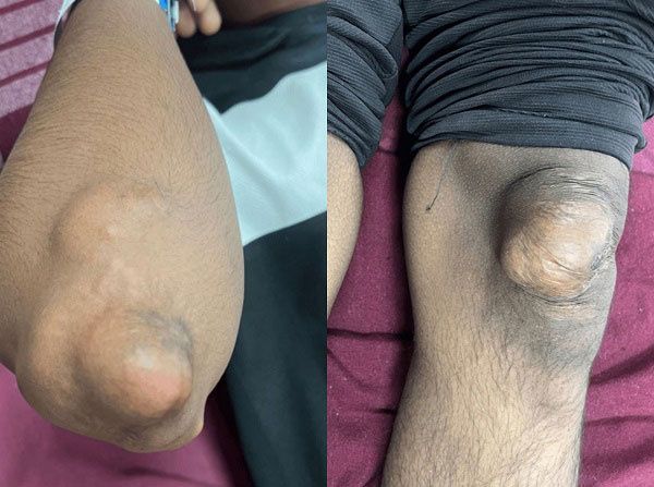 인도 방갈로르 마니팔 병원 정형외과 의료진에 따르면 최근 20세 남성이 양쪽 팔꿈치와 무릎, 엉덩이 등에 다발성 종양이 생겨 병원을 찾았다. 검사 결과 팔꿈치 종양은 가로 6cm, 세로 4cm였으며 무릎은 7cm와 3cm, 엉덩이는 9cm와 4cm 등 다양한 크기의 병변이 확인됐다.