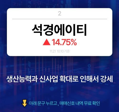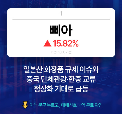 최적의 매매타이밍을 실시간으로 전송하여 투자자들에게 도움이 되고 있는 주식AI 라씨 매매비서가 오늘 분석한 인기검색종목은 삐아 +15.82%, 석경에이티 +14.75%, 한국피아이엠 +7.39%, 오가닉티코스메틱 +6.86%, 사조씨푸드 +5.47%