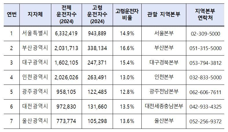 이번에는 지역과 모집 대상이 확대된다. 3개 기관은 1차 시범사업 결과를 바탕으로 세종시를 제외한 전국 특별시·광역시 7개 지역 고령운전자 730명을 대상으로 오는 12월 1일부터 모집을 실시한다.