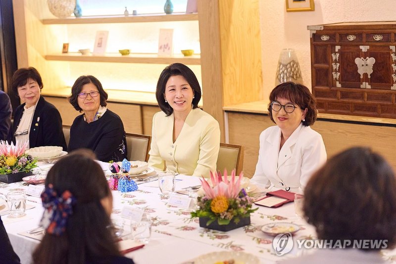전은수 대통령실 부대변인은 "김 여사가 사회공헌·문화교류 활동을 이어온 한인 여성들을 만났다"며 "김 여사는 앞으로도 세심하게 살피고 지원하겠다고 약속했다"고 밝혔다.