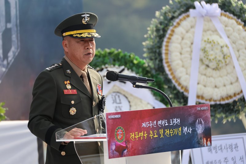 주 사령관은 기념사에서 "빗발치는 포탄과 치솟는 화염 속에서도 우리 해병대는 결연한 각오를 바탕으로 적의 도발에 용감하게 대응했다"며 "해병대는 참전 영웅들이 보여준 위국헌신 군인본분의 정신을 잊지 않고 대한민국의 평화와 자유를 위해 호국충성 해병대의 사명을 다하겠다"고 말했다.