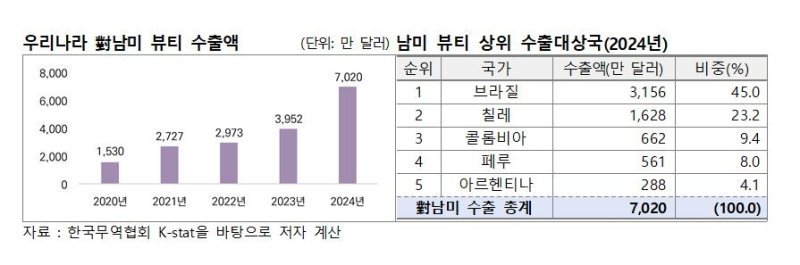 對남미 뷰티 수출 2020년 1530만불→2024년 7020만불