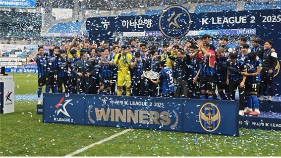 【파이낸셜뉴스 인천=한갑수 기자】 인천유나이티드가 2025 K리그2에서 우승하며 내년에 K리그1 복귀를 이뤄냈다.