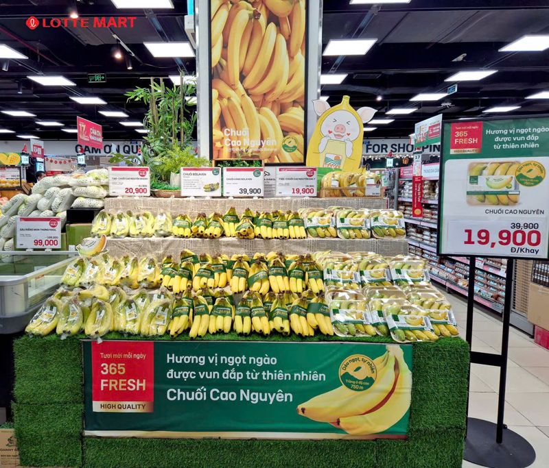 24일 현지 언론 등에 따르면 이번 협약에 따라 HAGL은 롯데마트의 고품질 신선식품 공급업체로 참여하며, 바나나, 바나나 먹인 돼지고기, 냉동 두리안 등 주요 제품을 공급한다. 지난 21일부터 이들 제품은 롯데마트 남사이공점, 고밥점, 탄빈점, 푸토점 등 4개 매장에서 우선 판매를 시작했다.
