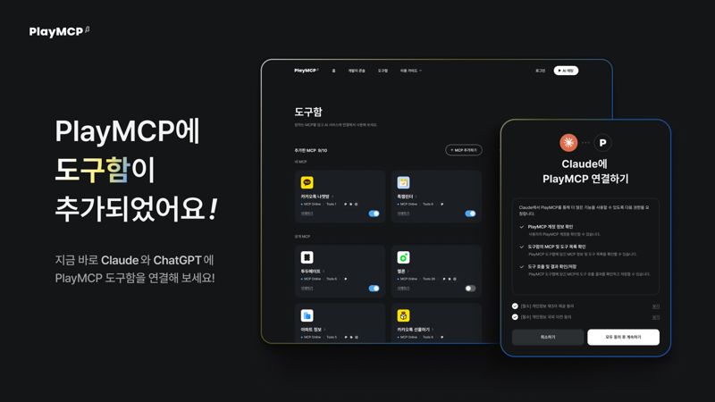 이번에 새롭게 선보이는 도구함은 PlayMCP에 등록된 수많은 MCP 도구를 이용자가 직접 선택해 한 곳에서 관리하고, 이를 챗GPT나 Claude 같은 외부 AI 서비스에서도 카카오 계정 한 번의 인증만으로 바로 사용할 수 있게 해주는 핵심 기능이다.